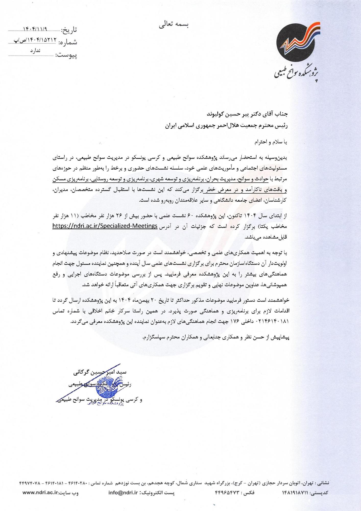 جلسه بررسی و بازبینی طرح تحقیقاتی :«نگاشت نظام مساءل و محور های پژوهش و فناوری جمعیت هلال احمرج.ا.ا.»